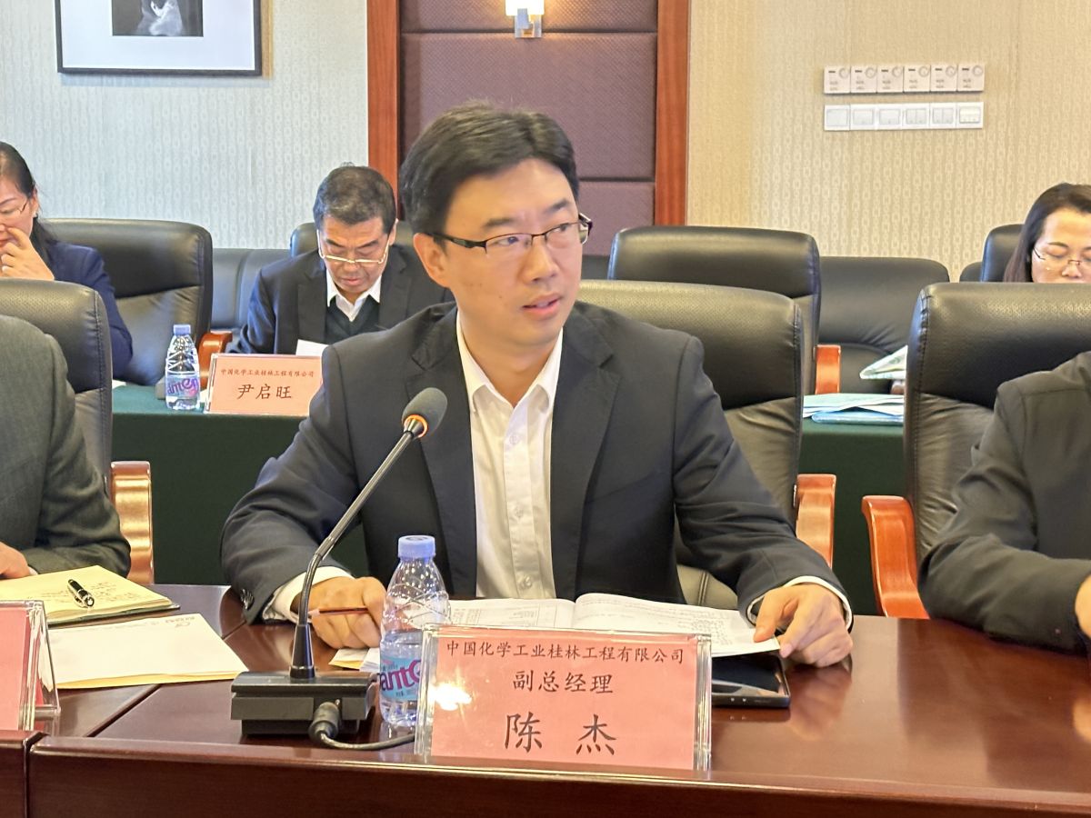 中國化學(xué)工業(yè)桂林工程有限公司副總經(jīng)理陳杰主持了第一次工作會(huì )主要內容階段的會(huì )議。