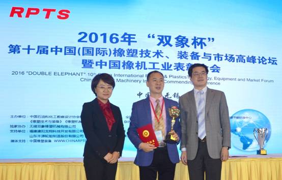 最后,全國橡塑中心鄭玉勝主任代表論壇主辦方向第十屆橡塑高峰論壇獨家協(xié)辦方無(wú)錫雙象橡塑機械有限公司總經(jīng)理呂偉先生頒發(fā)了紀念獎杯和證書(shū)。