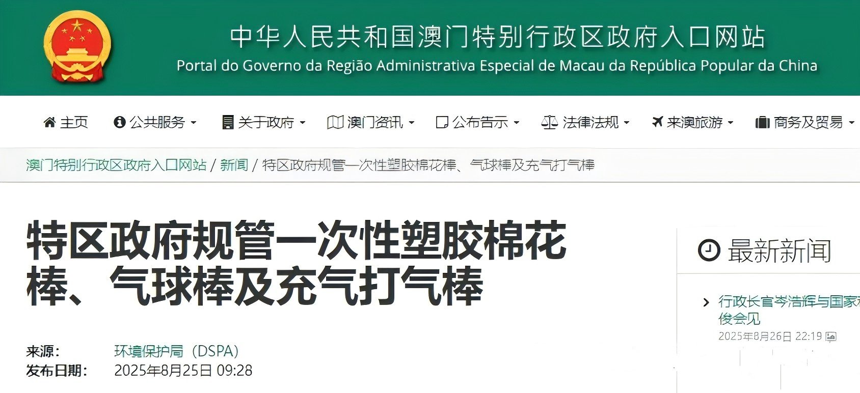 澳門(mén)宣布,2026年起禁止3類(lèi)一次性塑料制品根據澳門(mén)特區政府8月25日發(fā)布的消息,通過(guò)第163/2025號行政長(cháng)官批示,自2026年1月1日起,禁止進(jìn)口3類(lèi)一次性塑料制品,分別是一次性塑膠棉花棒、一次性塑膠氣球棒及充氣打氣棒?! ∠嚓P(guān)規定是依據經(jīng)第3/2016號法律修改的第7/2003號法律《對外貿易法》第五條第一款(五)項之規定實(shí)施的,目的是更好地保障澳門(mén)的環(huán)境質(zhì)量?! ≡谥朴喩鲜龉苤拼胧┣?,特區政府已綜合分析澳門(mén)的實(shí)際情況、替代品供應及參考鄰近地區的經(jīng)驗,并與相關(guān)業(yè)界進(jìn)行交流和聽(tīng)取意見(jiàn),以冀透過(guò)一系列的限塑措施,更好地保障本澳環(huán)境質(zhì)素。 2025-08-28 【節能環(huán)?!?/div>