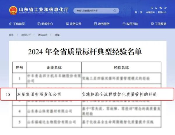 行業(yè)唯一!這家輪胎廠(chǎng)被評為山東省質(zhì)量標桿近日,山東省工業(yè)和信息化廳公布2024年全省質(zhì)量標桿典型經(jīng)驗名單,雙星集團“實(shí)施輪胎全流程數智化質(zhì)量管控的經(jīng)驗”案例成功入選,成為輪胎行業(yè)唯一入選企業(yè),彰顯了雙星在數智化質(zhì)量管理中的示范引領(lǐng)作用?! 樨瀼芈鋵?shí)省委、省政府《關(guān)于聚力推動(dòng)工業(yè)經(jīng)濟高質(zhì)量發(fā)展十大行動(dòng)的意見(jiàn)》部署要求,加快提升工業(yè)品質(zhì)量品牌,加強質(zhì)量支撐,推動(dòng)制造業(yè)高質(zhì)量發(fā)展,省工業(yè)和信息化廳組織開(kāi)展了2024年全省質(zhì)量標桿典型經(jīng)驗遴選工作?! 私?,質(zhì)量標桿是指企業(yè)通過(guò)技術(shù)創(chuàng )新、管理創(chuàng )新和商業(yè)模式創(chuàng )新,運用先進(jìn)的質(zhì)量管理方法和質(zhì)量工程技術(shù),在系統提升產(chǎn)品和服務(wù)質(zhì)量的實(shí)踐過(guò)程中,形成的具有示范效應、可借鑒、可推廣的典型經(jīng)驗?! ‰p星是一家具有百年歷史的國有企業(yè),2014年,雙星開(kāi)啟“二次創(chuàng )業(yè)、創(chuàng )輪胎世界名牌”新征程。2016年,建成了全球輪胎行業(yè)第一個(gè)全流程“工業(yè)4.0”智能化工廠(chǎng)和全球領(lǐng)先的輪胎研發(fā)中心,成為近年來(lái)唯一一家被國家工信部授予“品牌培育”“技術(shù)創(chuàng )新”“智能制造”等全產(chǎn)業(yè)鏈試點(diǎn)示范的企業(yè),被稱(chēng)為“中國輪胎智能制造的引領(lǐng)者”?! 〈舜坞p星入選的“實(shí)施輪胎全流程數智化質(zhì)量管控的經(jīng)驗”案例,是基于輪胎全生命周期的智能制造、智能服務(wù)新模式、新業(yè)態(tài)?! ‰p星從用戶(hù)需求入手,以用戶(hù)滿(mǎn)意為目標,率先搭建“研發(fā)4.0”+“工業(yè)4.0”+“服務(wù)4.0”產(chǎn)業(yè)互聯(lián)網(wǎng)生態(tài)圈,建立了國際水準的質(zhì)量標準體系,打造了“PDCA”數字化質(zhì)量管理體系,完善了產(chǎn)品檢驗體系?! ⊥ㄟ^(guò)全流程數字化,加速數據再應用和開(kāi)發(fā),加速產(chǎn)品研發(fā)和創(chuàng )新,加強輪胎全流程數智化質(zhì)量管控,全面提升質(zhì)量管理,以高性能、高品質(zhì)的產(chǎn)品贏(yíng)得市場(chǎng)口碑。同時(shí),該案例能夠在行業(yè)和其他重點(diǎn)領(lǐng)域快速復制并推廣應用?! ‰p星將以此為契機,持續提升企業(yè)質(zhì)量管理水平,提高產(chǎn)品和服務(wù)質(zhì)量水平,加快發(fā)展新質(zhì)生產(chǎn)力,為先進(jìn)制造業(yè)強省建設提供新經(jīng)驗、做出新貢獻。 2024-07-05 【輪胎】 -