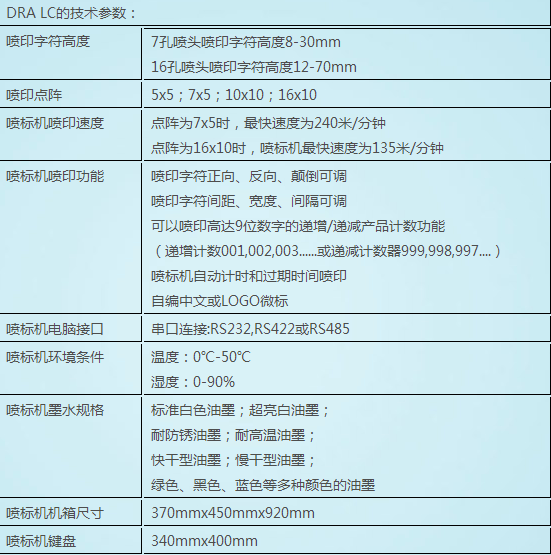 公司竭誠為客戶(hù)介紹并提供噴碼噴標機行業(yè)的新信息,致力于向客戶(hù)推介適用于客戶(hù)噴碼需求的噴碼設備:德瑞雅大字機與小字機、稱(chēng)重測長(cháng)設備、橡膠輪胎噴標機、高解析噴碼設備等。它適用環(huán)境要求低,穩定強勁。成績(jì)源于不斷的努力,德瑞雅將堅持以提供更好的產(chǎn)品和服務(wù),爭創(chuàng )行業(yè)龍頭為奮斗目標,積極進(jìn)取,開(kāi)拓創(chuàng )新,鑄就產(chǎn)品標識行業(yè)知名品牌。